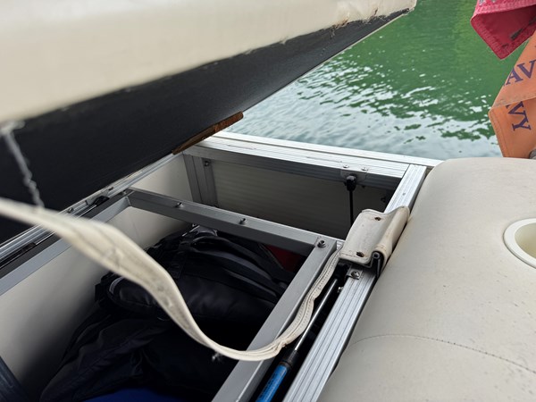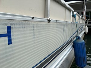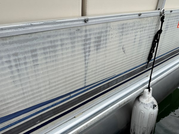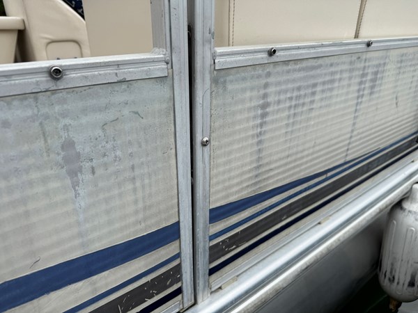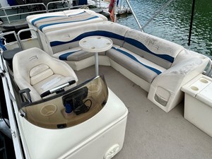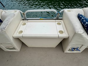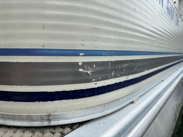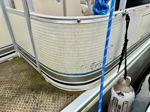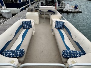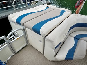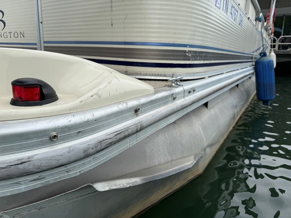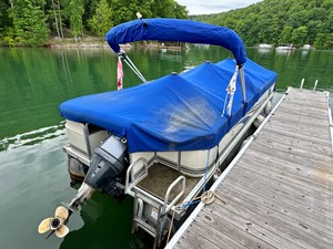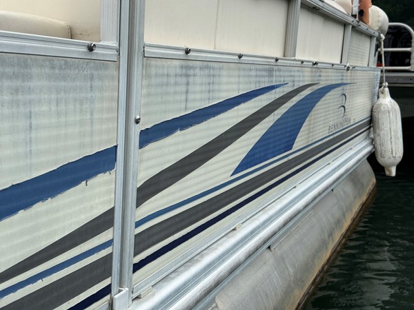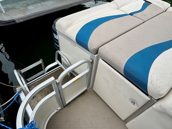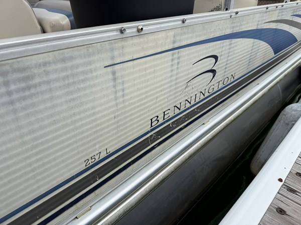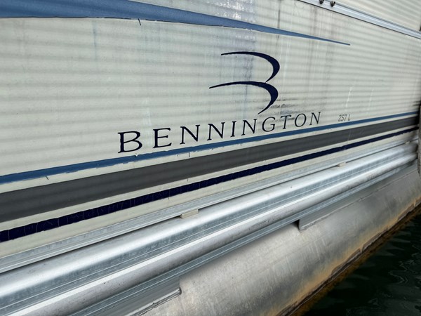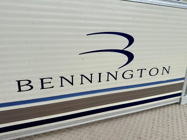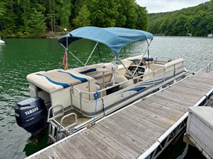 This 2002 Bennington 257-L Pontoon Boat For Sale on Norris Lake Tennessee is equipped with a 90HP Yamaha 4-Stroke Outboard Motor and features a bimini top, mooring cover, docking lights, a moveable ottoman w/integrated cooler storage and cupholders, a removable lounge table w/4 cupholders - 17 cupholders throughout - an AM/FM/CD stereo, depth finder with water temperature, a Lowrance Hook-5 GPS/chartplotter, pop-up changing room frame (needs new canvas), dual batteries with a battery selector switch, 3-step swim boarding ladder, 4 fender clips, 4 mooring cleats, wheelchair-friendly 31" wide gate openings at the bow, port, and starboard sides, and much more!