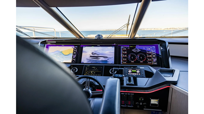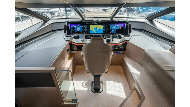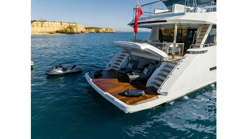 The revolutionary Sunseeker ‘Beach Club’ provides an exceptional area to relax at water level. The tender garage can accommodate a Williams 460 Sportjet and GTX255 jet ski, with plentiful stowage for SeaBobs, diving equipment and paddleboards. The innovative X-TEND™ system offers several seating arrangements, facing aft in its lowered position or, at the flick of a switch, forward at cockpit level.