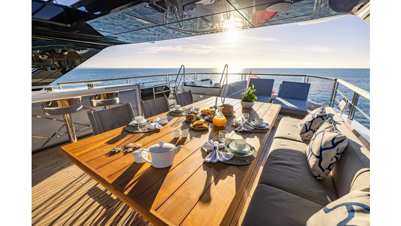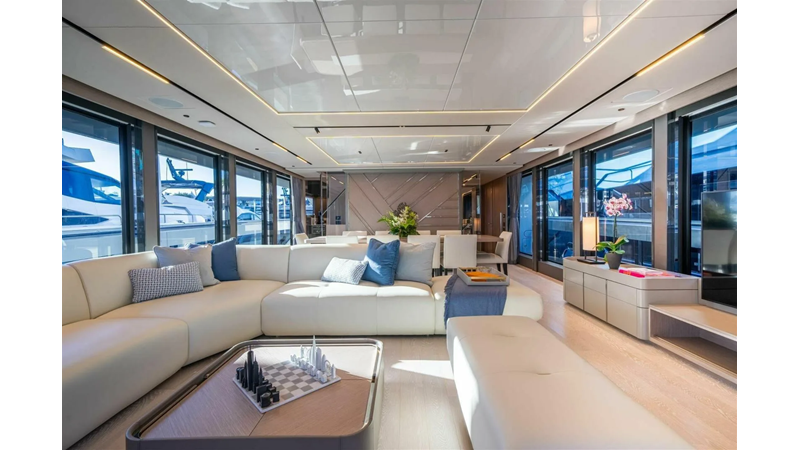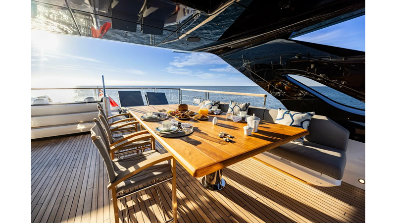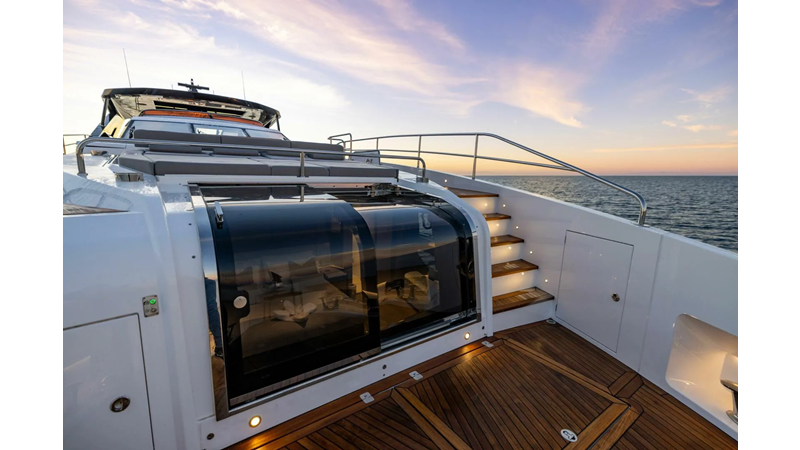 A striking Owner Stateroom forward with a private bow terrace, sunbathing hideaways, a breathtaking single-level exterior deck from flybridge to foredeck, a beautifully proportioned open-plan interior and generous ‘Beach Club’, just a few of her magnificent features.