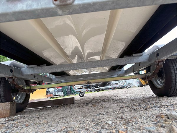 The boat is in great shape for its age, showing only light, expected signs of use and a few cosmetic markings. It comes complete with a matching trailer, making it a ready-to-go package.