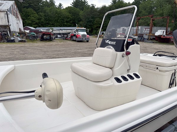 The 2014 Mako Pro 17 Skiff is a 17-foot center console designed for shallow water fishing in both freshwater and saltwater. Built with Mako’s stable inverted V hull and a 10-degree deadrise, it delivers solid performance with minimal horsepower while comfortably handling gear and passengers. Notable features include a molded center console with an integrated baitwell, ample storage compartments, and spacious fore and aft fishing platforms.