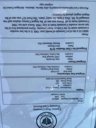 This fabulous Century Coronado was restored by a noted and respected vintage boat collector, who oversaw a complete restoration, including the Chrysler Hemi. This boat is equipped with the rare optional sliding hardtop, which is a restoration challenge in and of itself!