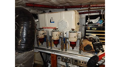 The yacht is equipped with reliable twin MAN 12 cylinder diesel engines(1000HP each), the engines are very fuel efficient at low RPMs, the MAN engines dropped down to six cylinders each at slow speed for fuel efficiency. Plus, unlike Detroit diesels these engines are 4 cycle. two generators and an inverter.