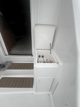 The Master Stateroom is giving you a full size bed with walk around space on each side. VIP stateroom is forward with a space due to the increase in bow space. There is a Washer / Dryer along with the third stateroom to Starboard side with bunks and perfect for crew.