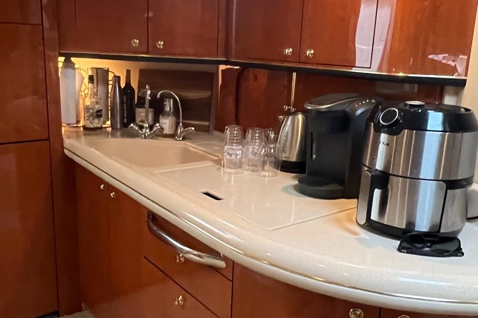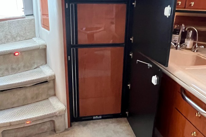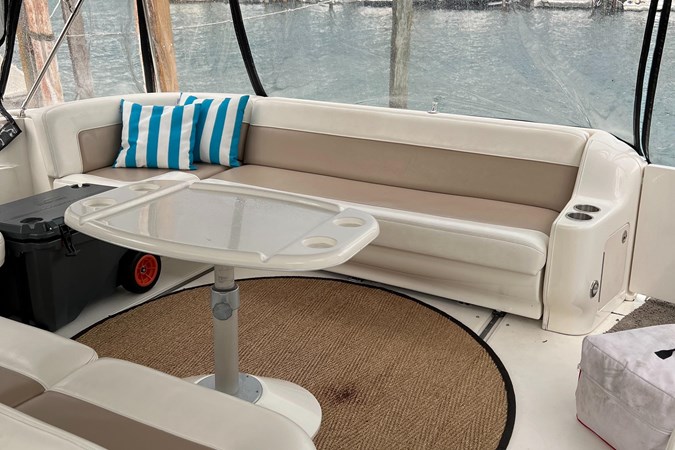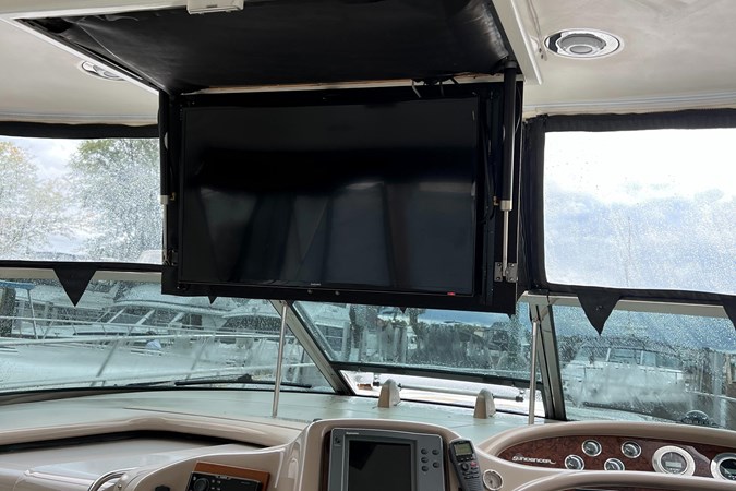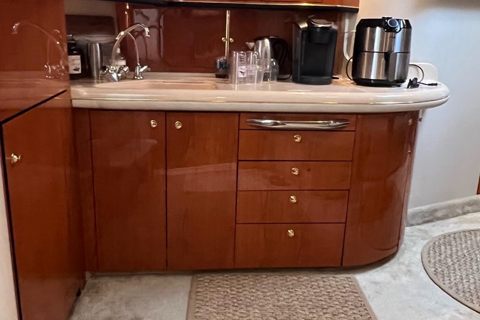 Sea Ray interiors have always been among the best in the business, and the accommodations of the 460 are impressive in every respect. The mid-stateroom, complete with an enclosed head and standard washer/dryer, offers complete privacy behind sliding pocket doors. (Note that the settees in both the salon and mid-stateroom convert to double berth at the touch of a button.) In the cockpit, the facing aft settees convert electrically into a huge sun pad. A gas-assist hatch provides easy access to the engine room. An extended swim platform was standard.