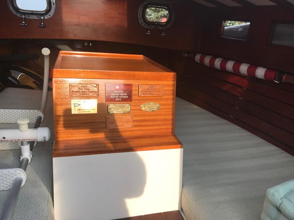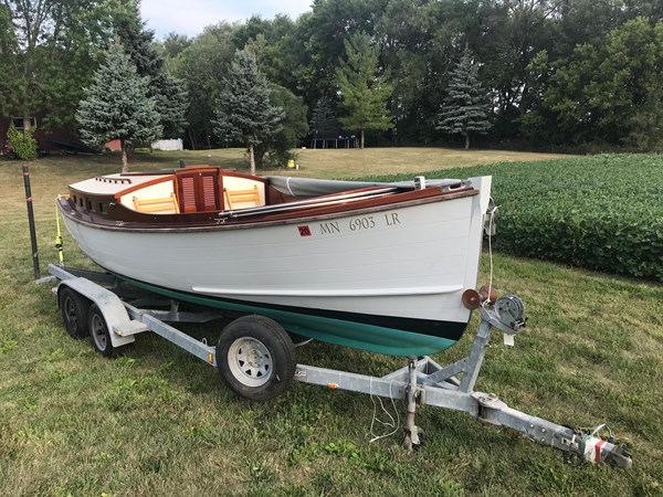 Elegant, cold molded launch, perfect for cocktail cruising, with cabin accommodations for two. Beta Diesel, 13.5 hp, sips fuel, full mooring cover and tandem axle trailer.