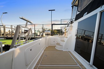 Flybridge & Cockpit: Enjoy panoramic views from the flybridge, complete with seating for multiple guests, or relax in the shaded cockpit area.