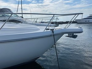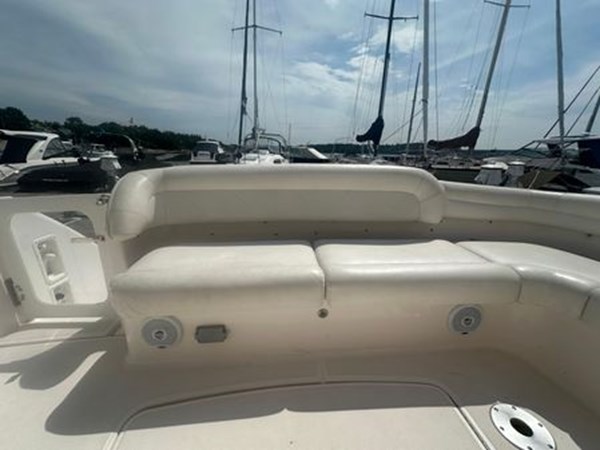 This 2007 Tiara Yachts 4300 Sovran stands out as an exceptionally clean and meticulously maintained vessel, offering unparalleled comfort and style. One of its key features is the full glass windshield, which eliminates the need for Isinglass and enhances the overall sleek design. The aft sunshade provides ample shade over the cockpit seating area, creating the perfect environment for relaxing or entertaining guests.