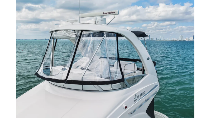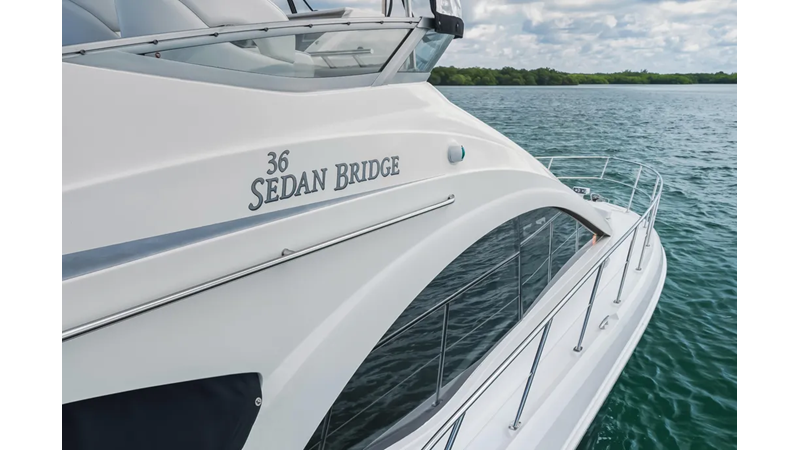 Everything about this beauty is designed with extended voyages in mind, including its outstanding ride and sea-keeping abilities, open and airy cabin, and two well-appointed staterooms. While the captain takes command at the helm, guests will enjoy breathtaking views from the generous bridge seating. In comfort as well as style, the 36 Sedan Bridge will take you to your destination.