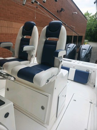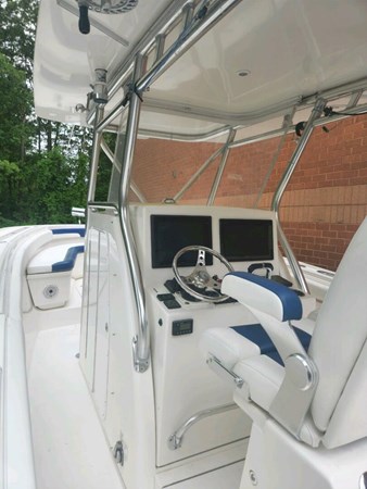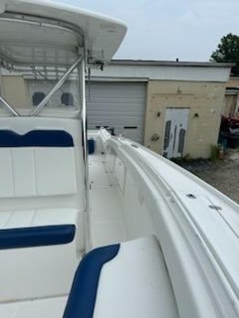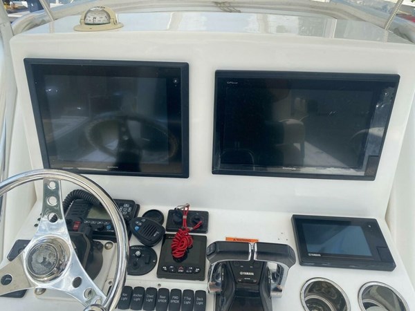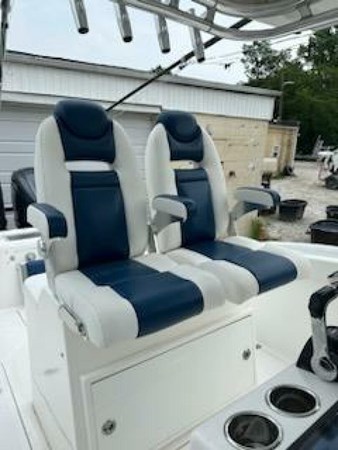 This 2013 Buddy Davis 34 CC is a fantastic boat, especially with the new upholstery! Its exceptional ride and hull design, combined with the 24-degree deep V hull and deep forward entry, make it perfect for both near-shore and offshore fishing. The numerous fishing amenities and the stand-up head with a sink and handheld shower add to its functionality and comfort. She was repowered with twin 2019 Yamaha 425's (650 hours and still under warranty thru 06/18/2026) getting you to the fish and the dock in record time.