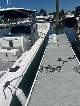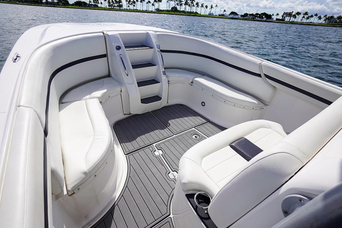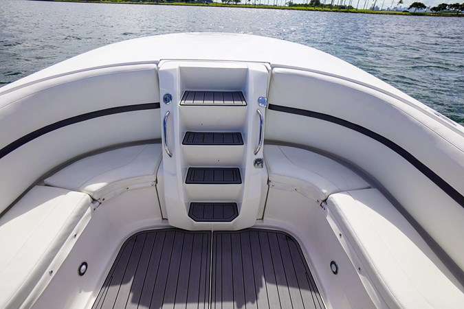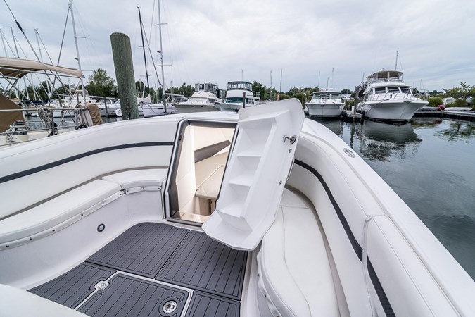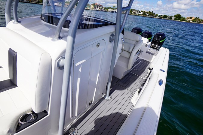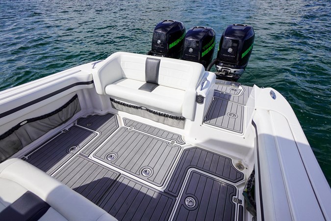 Updated Mercury DTS helm controls, Freshly wrapped green for the entire hull as well as new bottotm paint. Brand new SeaDek, 2x Garmin 7212's, Garmin VHF, Clarion radio w/ JL sound system, Vetus bow thruster, Remote searchlight, Frigid Rigid cooler in rear, trim tabs, underwater lights, bottom paint, color matching Mercury Decal kit.