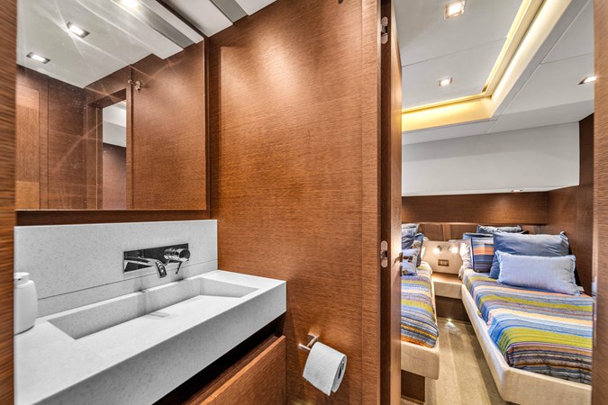 4 staterooms with a main-deck master which is extremely rare in a yacht this size, 3 heads + crew quarter for 2 with ensuite. Full beam VIP, would be the master on most vessels this size!