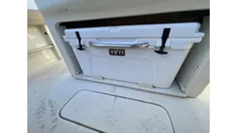 Deluxe Fiberglass Leaning Post w/ Companion Seats w/ Cushions that Fold into Bolsters w/128 qt Igloo Cooler & 4 Flush Mount Rod Holders
