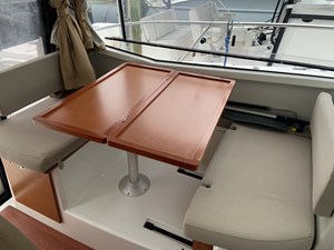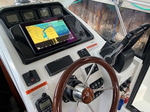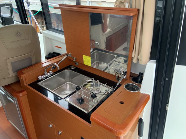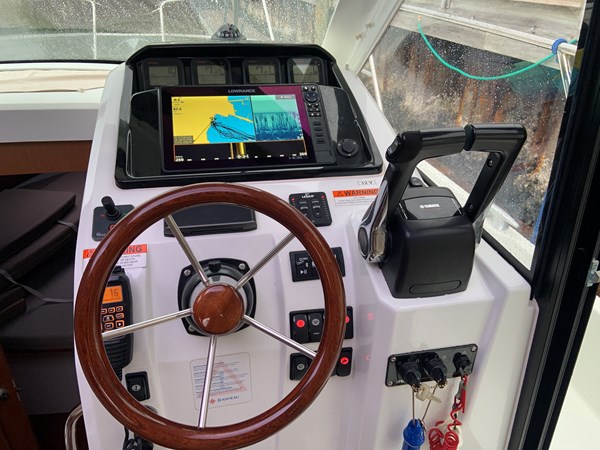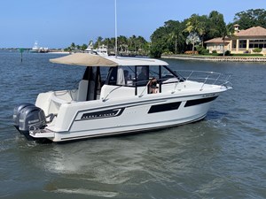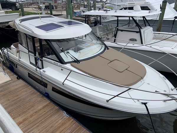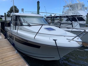 When you think pocket cruiser we now think Jeanneau and the Coupe cruiser. Two full cabins with privacy doors. As well as full head and shower with door as well. Dinette is the transformer in all this. It can be a forward guest seating, filled in for lounging, set as a dinette for eating and just daydreaming out the full 360-degree view. Easy to operate with twins and a bow thruster, electric windlass, shore power, new generation GPS plotter and more. Fantastic day cruiser for sandbar retreats as well as extended cruising up and down the Keys. Bahamas is a must. Tried and true power with the Yamaha 150’s and an owner who followed scheduled maintenance. Super nice condition inside and out - just serviced, antifouled and polished for the summer. Oversized 12’ GPS fits comfortably right in front of Captain. Currently in a wet slip at major Stuart Marina.