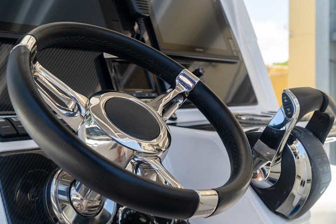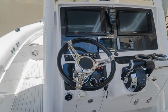 POWDER COATED T-TOP. DASH ELECTRIC REMOTE BATTERY SWITCHES. (4) JL AUDIO SPEAKERS (1) JL AUDIOSUB AND (1) JL AUDIO AMP. GARMIN TRANSDUCER. 2x GARMIN 7612. GARMIN RADAR DOME. GARMIN VHF RADIO. MERCURY VESSEL VIEW 4. GARMIN IN HULL TRANSDUCER. FRESH WATER TANK AND TRANSOM SHOWER. FWD STORAGE LOCKER. FULL BOAT COVER.