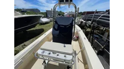 We have a rare brokerage offering here in a 2017 Jones Brother Cape Fisherman 23 with a Yamaha F200XB four stroke motor. These boats are held on to for years as they are crafted with pride and built to fish. Unfortunately, friend and legendary light tackle captain Tony Biski passed away this spring and his boat is now available. On board, you have a custom radar arch with a Simrad NSS MFD, radome and LED light bar. Yamaha 6YC gauge, Lenco tabs, and boarding handrail in the stern. Large storage lockers throughout and very flyrod/light tackle friendly layout. Trailer in decent shape included. High hour Yamaha that runs great but pricing reflects that. Pollen and leaves on the deck as its been sitting for a few weeks but boat will be very clean for delivery.