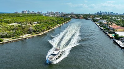 Powered by twin Cummins QSC 8.3 600HP engines with joystick control and a bow thruster, this yacht delivers precise handling in tight marinas—even in wind and current. The tropical-grade 87,000 BTU air-conditioning system ensures year-round comfort, fully integrated with the yacht’s intuitive Ship Control system for centralized management of onboard systems.