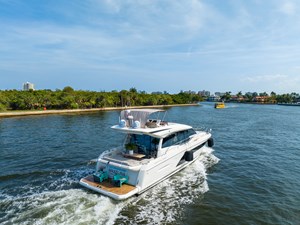 This 590S features beautifully maintained real teak decking across the hydraulic swim platform, aft cockpit, forward cockpit, side decks, and flybridge, offering timeless elegance and a warm, natural finish underfoot. The well-appointed interior boasts three spacious staterooms and two elegantly designed heads, providing premium comfort and privacy for both owners and guests. The private master suite is generously lit and thoughtfully laid out, complemented by refined VIP and guest accommodations.