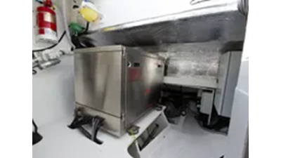 How does it work?: A large propulsion battery bank supplies power to the twin 35kW electric motors, as well as inverted power to all other on board systems, including high output water maker, air conditioning, induction cooktop and electric oven. Batteries are re-charged from solar, hydro-generation, auto start DC generators, and shore power.