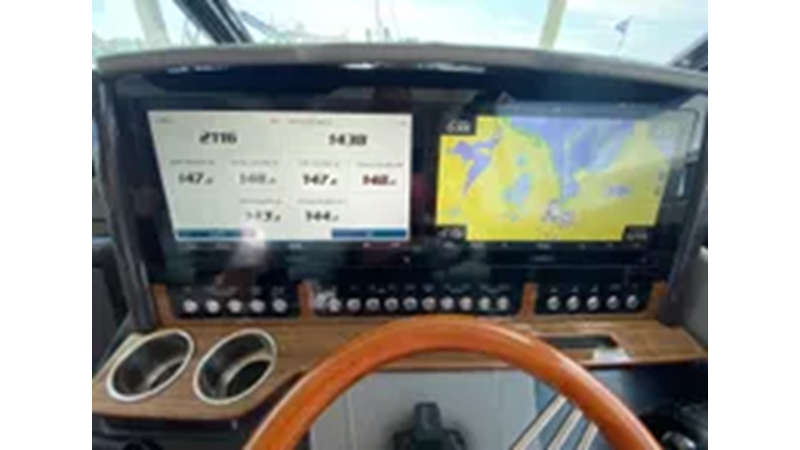 the Tiara Sport integrated electronics package provide power and control at the helm.