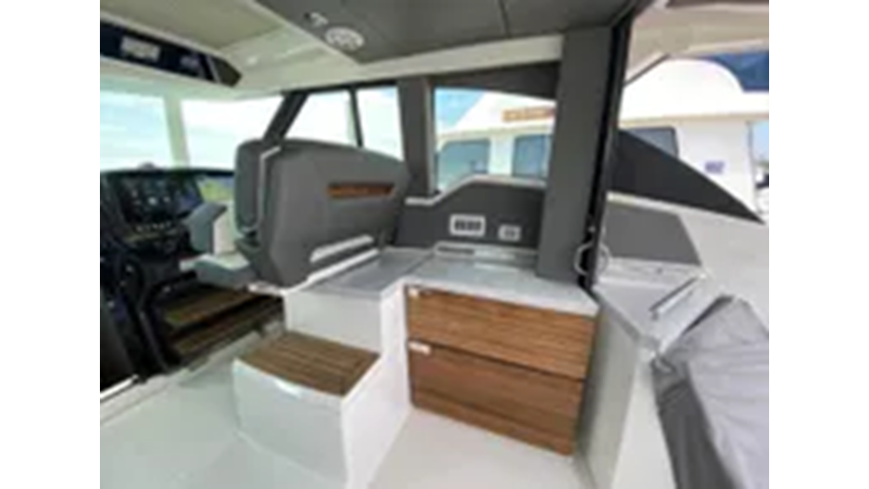 Entertainment features are found throughout, including the galley, grill and premium stereo system. Head below deck and you?ll find two sleeping accommodations; a queen