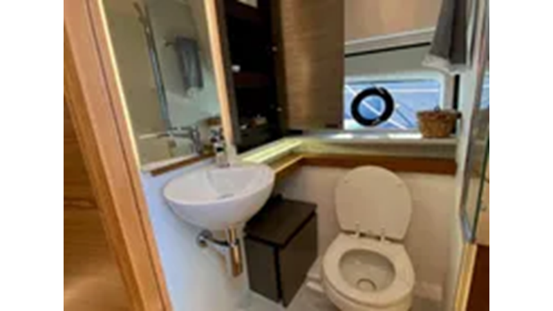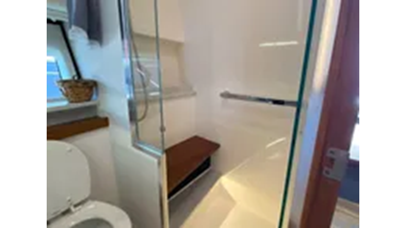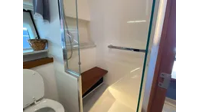 island berth and mid-cabin double berth. A complete head with separate shower provides all of the appropriate overnighting or day-yachting amenities one would need.