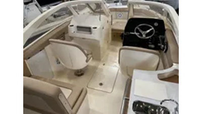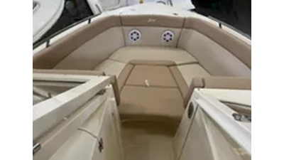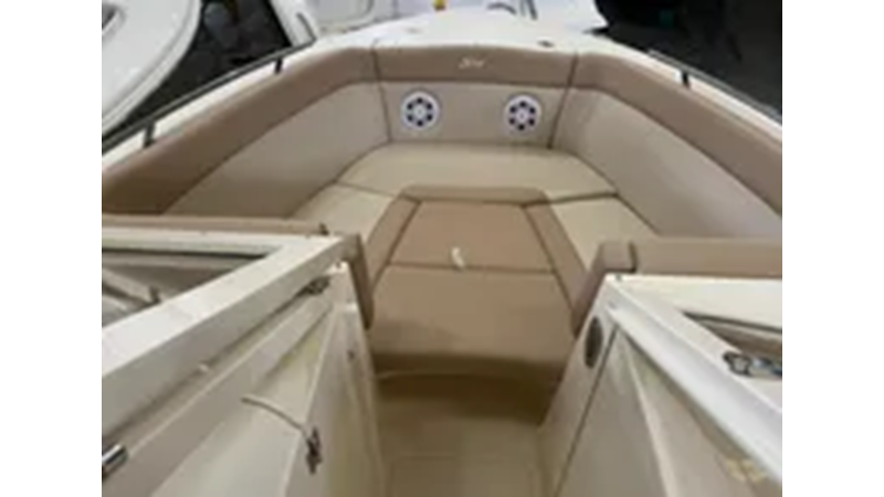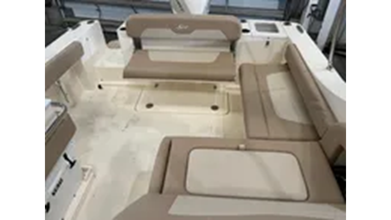 Our 240 Dorado showcases our NuV3 fuel efficient hull technology which affords you tremendous savings throughout your ownership. Loaded with family-friendly fishing features, this model comes standard with full transom swim platforms with synthetic teak foam pad and ladder, a port side fold down seat with folding table, fully cushioned bow seating and a stern seat in the transom among other features. An optional fiberglass hardtop is also available.