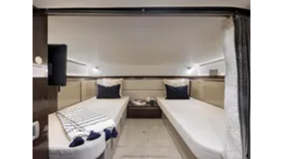 space in three entertainment zones. Spaces include a robust lounge area, an open cockpit with convertible seating and an expansive cabin. Ideal for day trips or overnight stays, the