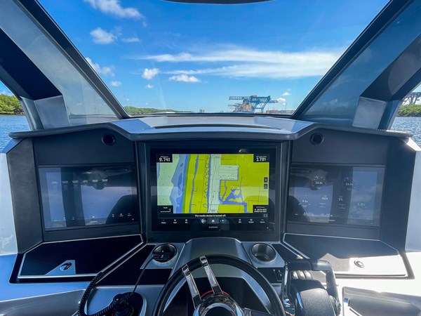 Triple Garmin Chart Plotters at Helm, Powered Bow Table. FWD Seating Mount Garmin 8622. Helm Overnight Mount Garmin 8617. Upgraded Transducer 1kW High Freq Chirp and 1kW Low freq. VHF Radio. SS Ratchet Mount. Stereo upgrades. Alarm System installation. Auto Pilot Garmin. Vaccuflush Electric Head, Fresh water system, raw water washdown, bow and stern thrusters, stainless steel plow anchor and windlass, Hard top rain shower, cabin Air Conditioning, Cabin Shower, refrigerator cool box located in Aft back Bar,
