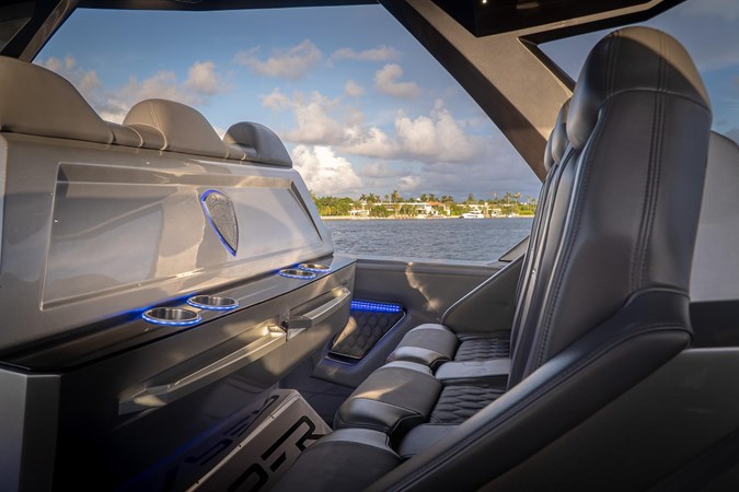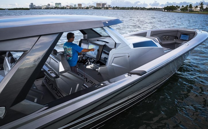 Stepping aboard the Adrenaline 47 Reaper, you are greeted by a meticulously crafted cockpit, designed to enhance the adrenaline-fueled journey. The ergonomically designed seats provide excellent support during high-speed maneuvers, while the state-of-the-art control panel offers intuitive navigation and access to vital boat systems.