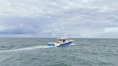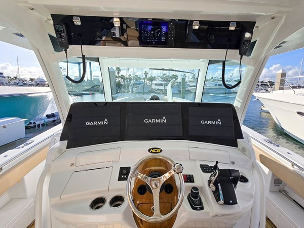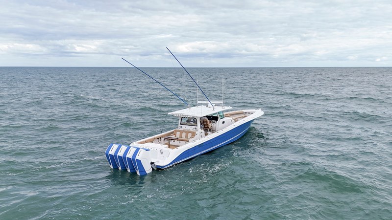 2023 HCB 53 Suenos with Quad Mercury 600 HP outboard engines with less than 300hrs with transferrable engine warranty until 2029. This boat is truly a one of a kind Fishing Platform with numerous upgrades throughout. This beautiful Jet Stream Blue hull with tan/cream topside upholstery is sure to be a show stopper. The Four 600 HP engines, with joystick control, and bow thruster make this boat highly maneuverable around the dock.