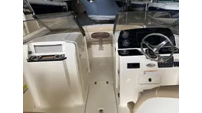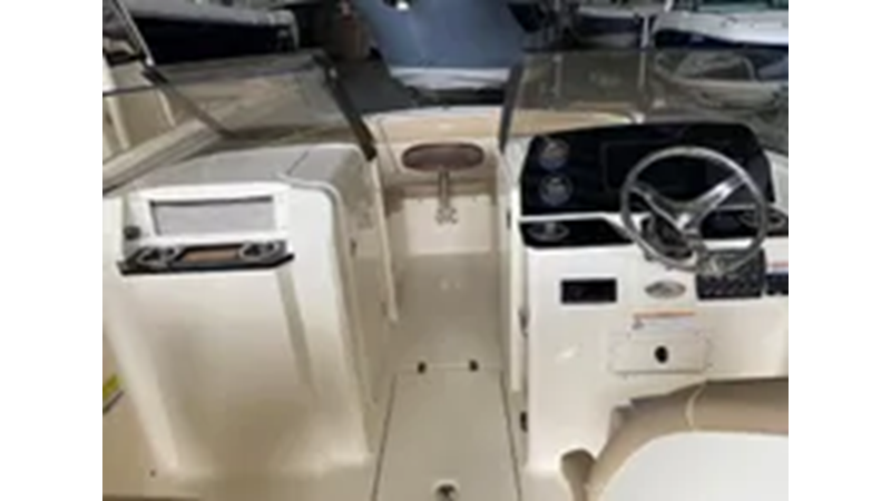 Looking for a dual console with a beautiful frameless wrap around windshield that further adds to the sleekness of the boat? Then you've found it with our 215 Dorado. Loaded with standard features like the Fusion Bluetooth stereo w/ four 6" speakers, hydraulic steering, and two adjustable captain's chairs that swivel 360 degrees. The transom also has dual swim platforms w/ a ladder for easy boarding.