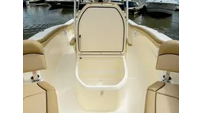 The 215 XSF is built on Scout's revolutionary fuel saving NuV3 hull design, while the deck offers ample standard amenities for everything from serious fishing to comfort cruising. Built with 100% hand-laid fiberglass, the boat boasts a wide comfortable beam of 8'6" with an overall length of 21'6". A notable standard feature onboard the 215 includes not only the forward seating in the bow, but also a forward sun lounge/coffin box complete with a cushion.