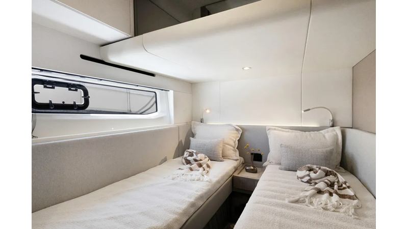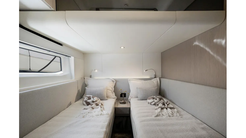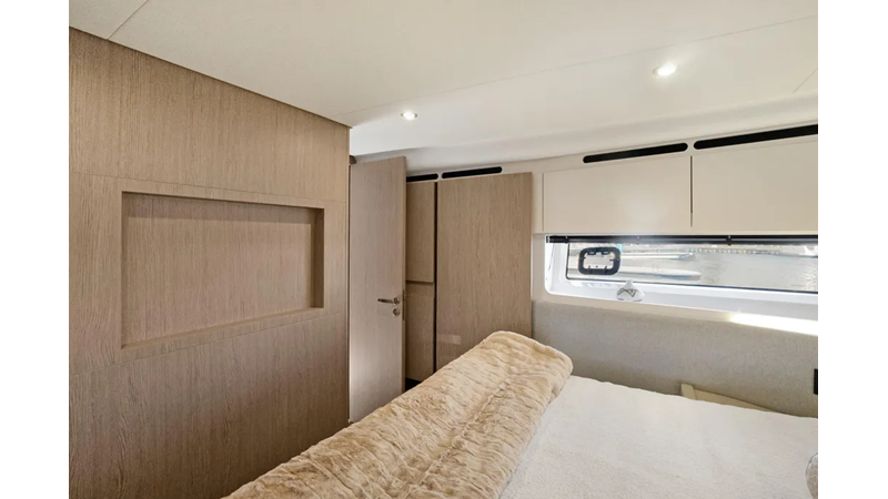 The airy ambience summons a sudden feeling of freedom on the Fly 53, well matched with the dynamic modern family’s search for new horizons. Elegantly curated and comfort-calling areas cultivate a serene sense of well-being, giving space and style a whole new meaning. Voyagers of all ages can move effortlessly throughout the full-height interiors, all the while enjoying a privileged perspective on the sea. Liberate your lifestyle on board the Fly 53.