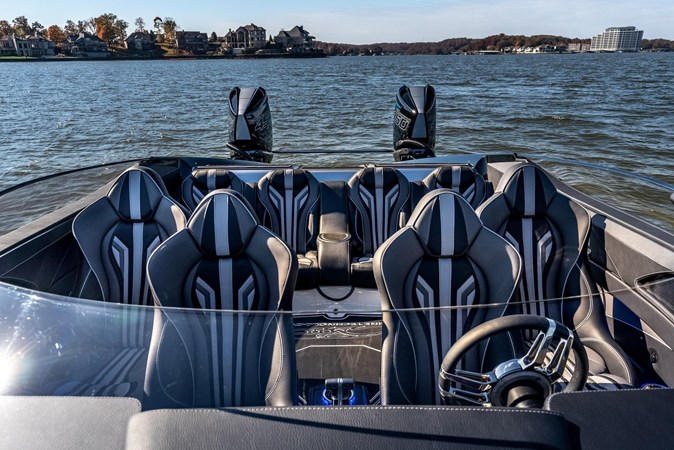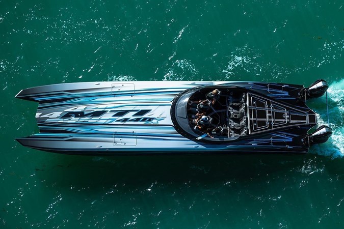 The MTI Outboard X-Series shares many of the same features found in our larger models. 8 seat cockpit with plenty of leg room, a large wrap around windshield and abundant storage lockers. Yet, the boat still has the ride and feel of its larger siblings. Twin Mercury Racing outboards bring the boat to life as it eases on plane with a small amount of throttle. Push the sticks forward and you’ll find yourself at quick 80 MPH cruise at an incredible 2.5 MPG. When you’re ready for more and conditions allow, there’s enough throttle left to go well past the century mark. Superb handling is also the trade mark of the outboard cats with the ability to turn hard and remain level. With the combination of all that and worry-free outboards, the 440X redefines what “Pleasure Boating” is all about.