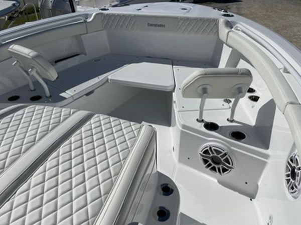 With twin outboard engines, the Everglades 315cc delivers impressive speed and agility, allowing you to navigate to your favorite fishing spots or coastal destinations with ease. The boat is fully outfitted with premium fishing amenities, including a large livewell, multiple rod holders, and ample storage for gear, catering to the needs of dedicated anglers. Yacht-like features such as plush seating, a high-quality sound system, and an innovative hardtop with integrated storage enhance the overall boating experience, making it perfect for both sport and leisure. With a focus on safety, the 315cc includes features like automatic bilge pumps and a robust RAMCAP hull design, providing peace of mind for offshore adventures. The Everglades 315cc is more than just a center console boat; it’s a statement of quality and a gateway to unforgettable maritime experiences.