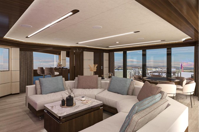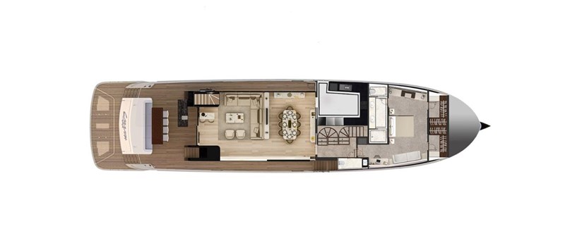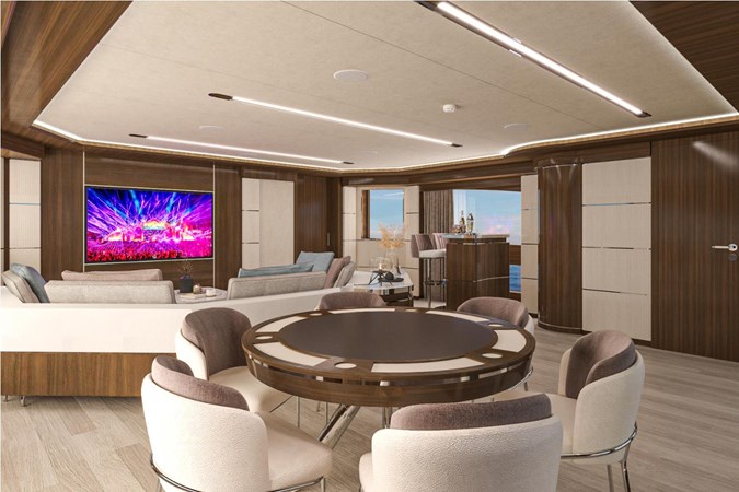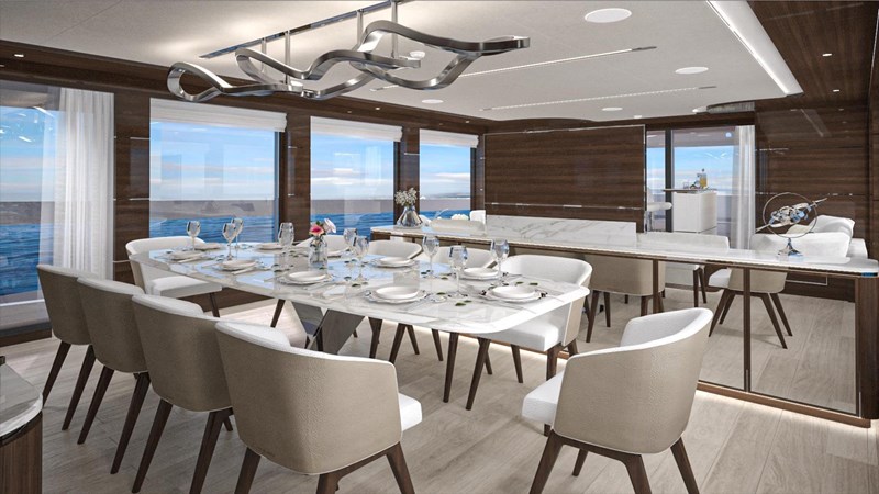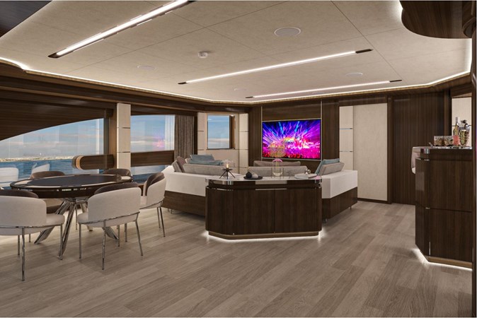 For those who want to entertain or socialize, the main salon and dining area provide an ample and versatile platform. The salon, filled with comfortable furnishings and top-notch entertainment systems, and a dining area boasting a magnificent dining table, offer panoramic views of your journey.