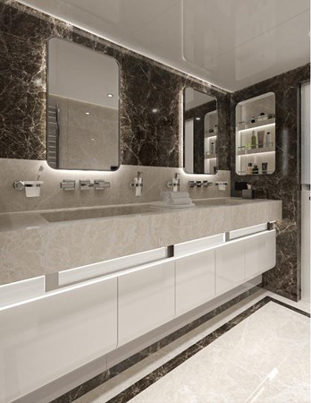 The master suite is a work of art in itself, offering a spacious private retreat with an opulent ensuite and a view that can rival any waterfront suite. The guest cabins are equally luxurious and comfortable. Featuring ensuites, soft linens, and plush furnishing, every room exhibits a sense of indulgence that meets, or indeed exceeds, the highest standards of luxury living.
