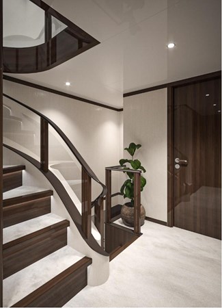 This majestic Lazzara UHV 100 stretches 100 feet, approximately 30.48 meters, in length- making it a true giant amidst motor yachts. Yet, its sizable layout doesn't equate to a exterior appearance. On the contrary, this motor yacht showcases the perfect balance between space and style. Its exterior is flawlessly streamlined, extending from bow to stern, looking as if it's been airbrushed by the winds. Elegance doesn’t get any better than this.