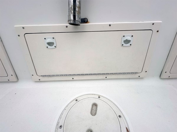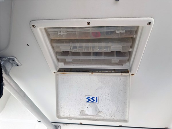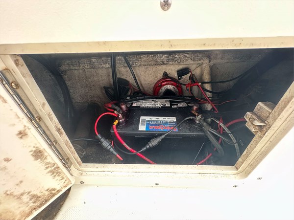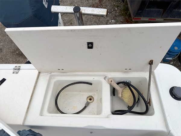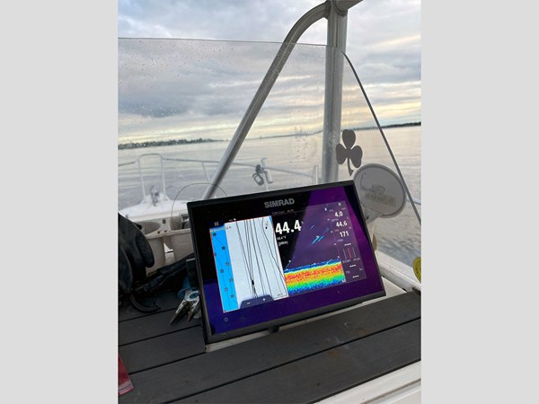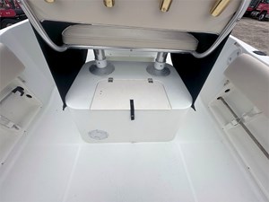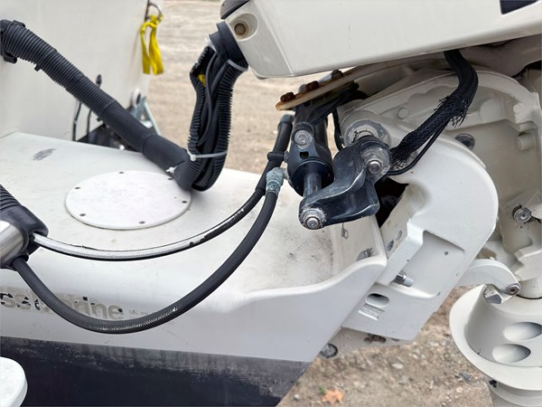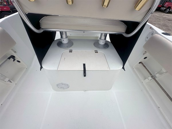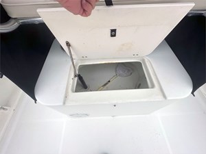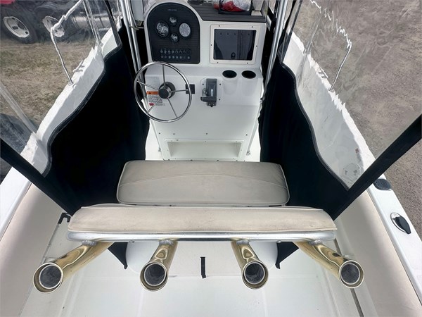 Equipped with a Simrad Go9 display and 2023 Halo 20 Radar, this boat is ready to navigate confidently. The 30-gallon live well, 109-gallon fuel tank, and 3-gallon XD100 oil tank make it ideal for full days on the water. Other additions include 360 degrees deck lights, shore power hookup with 2-bank battery chargers, and a large portapotty for longer outings.