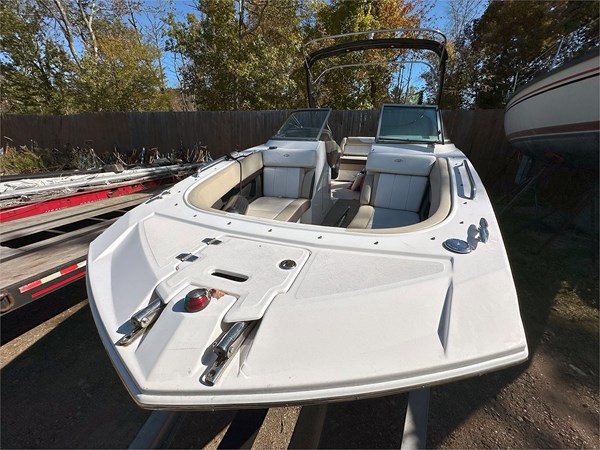 Spacious bowrider layout, wraparound cockpit seating, storage, and stainless cup holders. Features an enclosed head with pump-out toilet, dual swim platforms with stainless ladder, and plenty of room for family and friends.