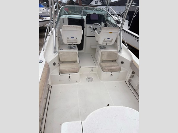 The 2003 Triton 2486 Walkaround stands out as a dynamic blend of comfort, performance, and versatility, perfectly suited for anglers and recreational boaters who value both convenience and capability. Its thoughtful walkaround layout enable effortless maneuvering around the deck, while the V-berth cabin, galley, and head extend the boat’s usability for overnight trips. The well-appointed deck, featuring rod holders, tackle storage, live wells, and integrated seating, ensures practicality during fishing adventures. The Triton 2486 remains an enduring favorite for those seeking a medium-sized, fully equipped boat that balances adventure, leisure, and family-friendly functionality.