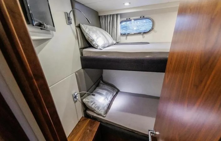 Starboard twin cabin and port bunk cabin, both with own TV, wardrobe, storage, en suite with day access