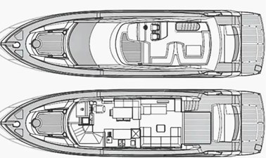 U-shaped seating and convertible sunbathing area on flybridge