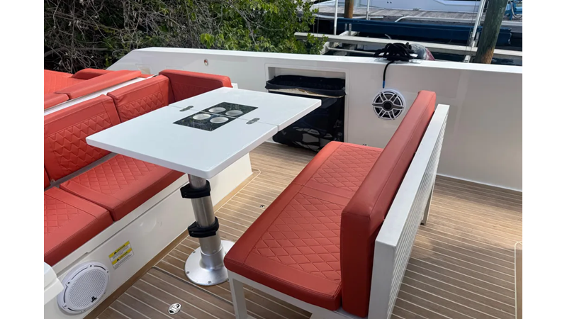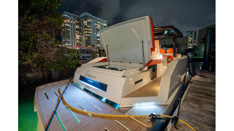 Experience the perfect balance of performance, innovation, and luxury aboard this 2023 De Antonio D42. Designed with striking Italian flair and contemporary sophistication, this premium walk-around cruiser features hidden outboard engines for a clean, elegant profile and whisper-quiet ride.