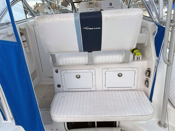The 2004 Pro-Line 30 Walkaround serves as a rugged bridge between dedicated offshore angling and comfortable family cruising. The 30 Walk is defined by its deep, secure recessed walkways that provide true 360-degree fishability while maintaining a surprisingly airy cabin that sleeps four. Built with Pro-Line's wood-free F.I.S.T. (Fiberglass Integrated Structural Technology) and a massive 10'10" beam, it remains one of the largest vessels in its class. Whether unitizing its open deck and fishboxes for angling or the full-service galley for a weekend away, this model remains a top-tier "bang-for-your-buck" choice for boaters who refuse to compromise between hard-core utility and live-aboard luxury. Don't miss the sale on this 30-foot walkaround Pro-Line.