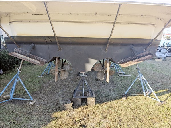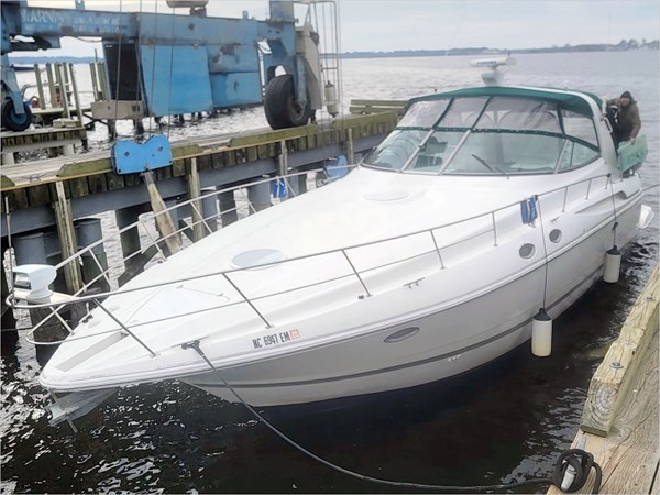 This Cruisers 3870 was well maintained and reportedly ran well at pickup. She was prepped for over-the-road transport and is now on land at our storage yard in St George SC.