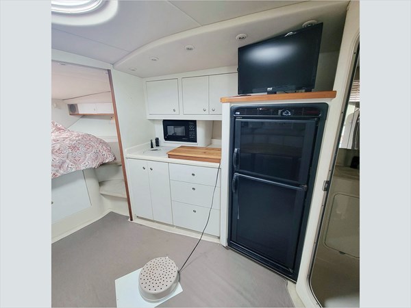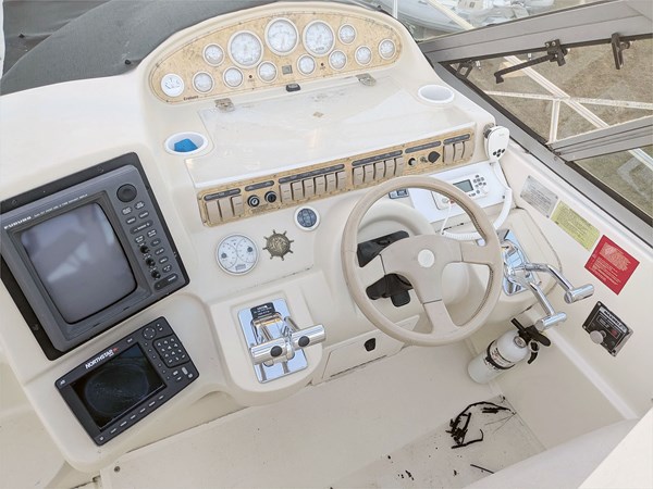 The 1998 Cruisers 3870 Esprit is a mid-range luxury Express, famously defying express cruiser norms with its two stateroom layout that offers the kind of privacy usually reserved for larger yachts. Built on a massive 13' 6" beam, it swaps the typical cramped "cave" mid-berth for a legitimate standing-room aft suite complete with its own private ensuite, making it a dream for owners who travel with adult guests. On deck, the social layout features a bi-level cockpit and an oversized swim platform that serves as a private beach, while the modified-V hull provides a stable, heavy-water ride that feels planted and secure. It’s the ultimate "floating condo", delivering a sophisticated blend of innovative architecture and robust cruising performance. Don't miss the sale on this 38-foot express cruiser.
