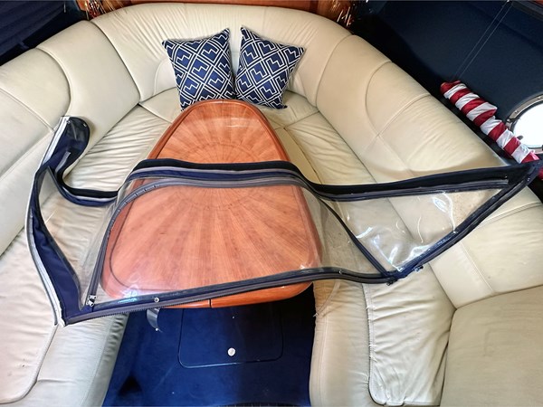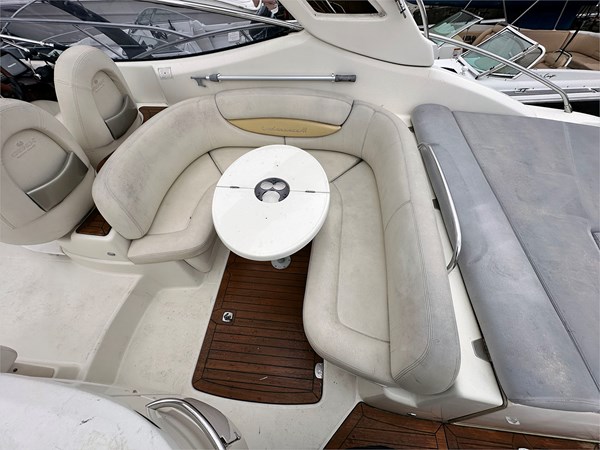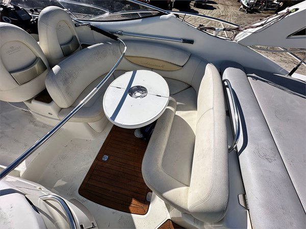 Spacious cockpit with U-shaped seating, wet bar & sunpad