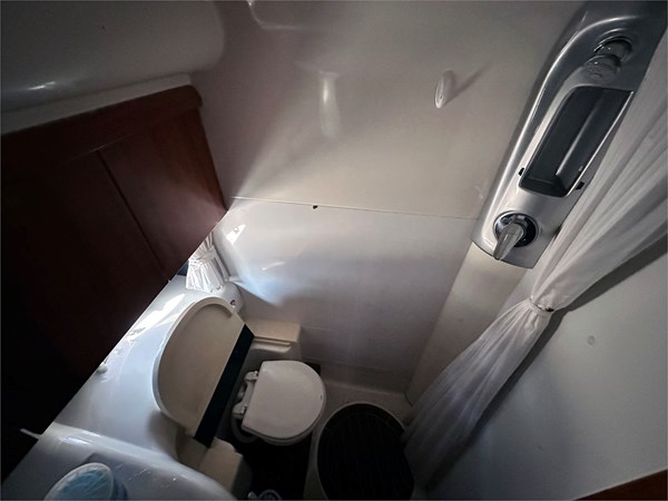 Full galley, enclosed head, and premium wood finishes